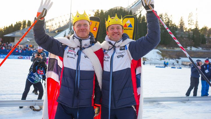 Broers Johannes Thingnes Bø en Tarjei Bø krijgen huldiging als koningen in Holmenkollen
