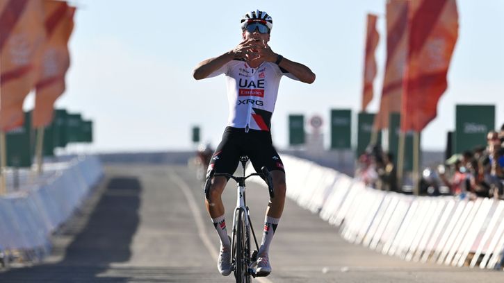 Niet Tim Merlier, maar Matteo Moschetti wint sprint slotrit AlUla Tour - Tom Pidcock grijpt eindzege